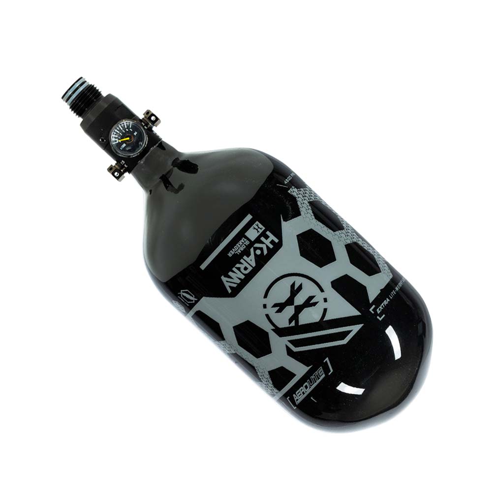 Previous Image Next Image HK Army HEX Aerolite Extra Lite Carbon Fiber Compressed Air Paintball Tank With Standard Regulator – 68/4500 – Black/Grey