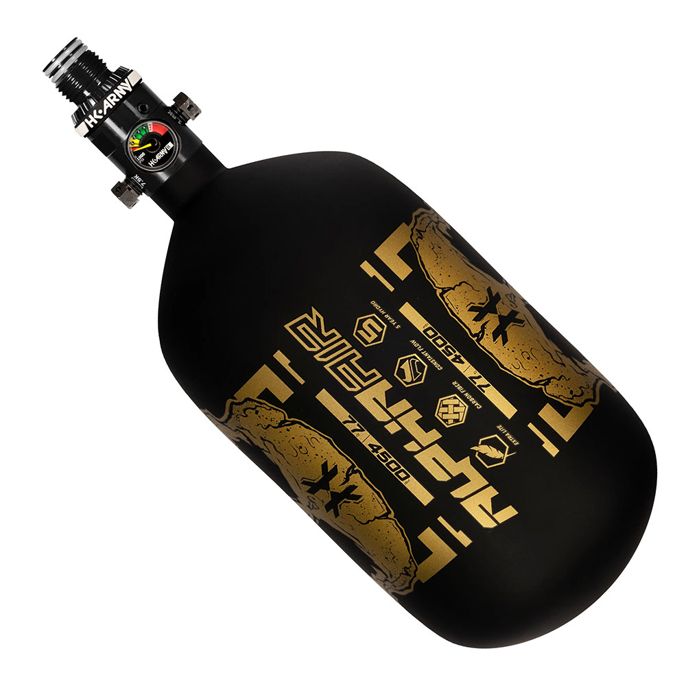 Réservoir De Paintball À Air Comprimé En Fibre De Carbone HK Army Alpha Air Avec Régulateur Standard HP8 – 77/4500 – DOOM Midas – Black/gold