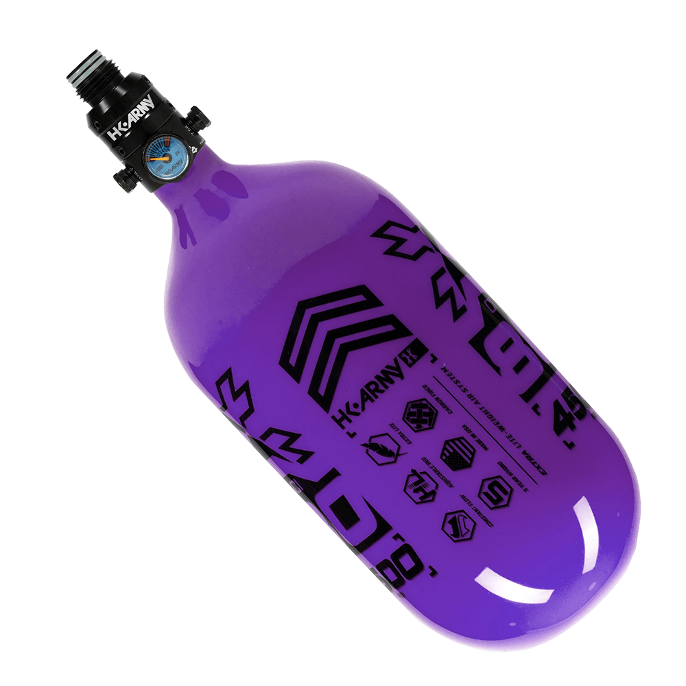 Previous Image Next Image HK Army Aerolite Extra Lite Carbon Fiber Compressed Air Paintball Tank With Pro Regulator – 80/4500 – RUSH – Purple/Black