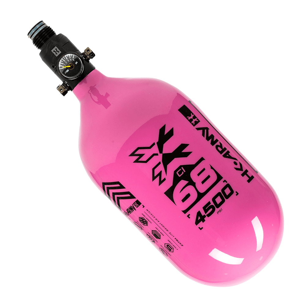Previous Image Next Image HK Army Aerolite Extra Lite Carbon Fiber Compressed Air Paintball Tank With Standard Regulator – 68/4500 – RUSH – Neon Pink/Black