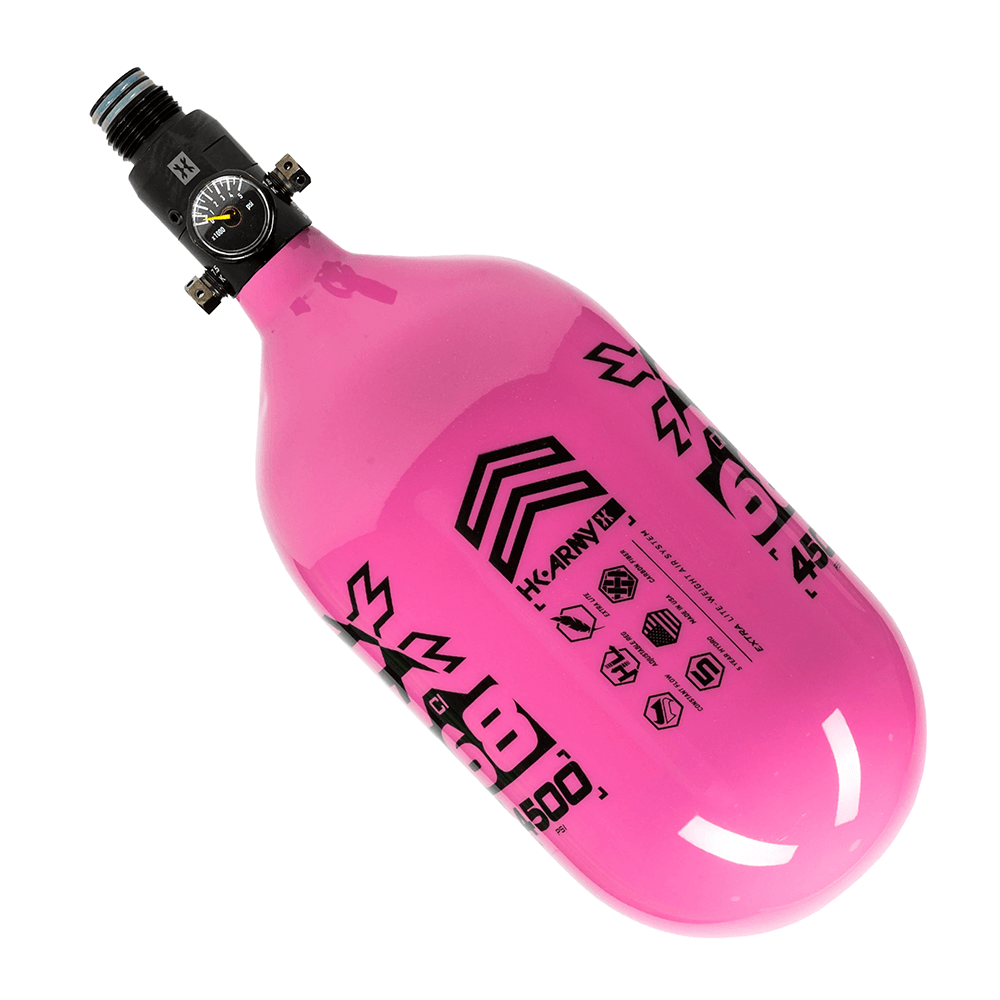Previous Image Next Image HK Army Aerolite Extra Lite Carbon Fiber Compressed Air Paintball Tank With Standard Regulator – 68/4500 – RUSH – Neon Pink/Black